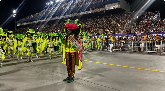 SÃO PAULO, SP (FOLHAPRESS) – A Império de Casa Verde foi a segunda escola a desfilar no Anhembi na madrugada deste domingo (2). A escola levou à avenida uma bateria toda fantasiada de Coringa, o vilão mais famoso do universo do Batman, e usou sua apresentação para questionar histórias clássicas da literatura e contos de fadas.