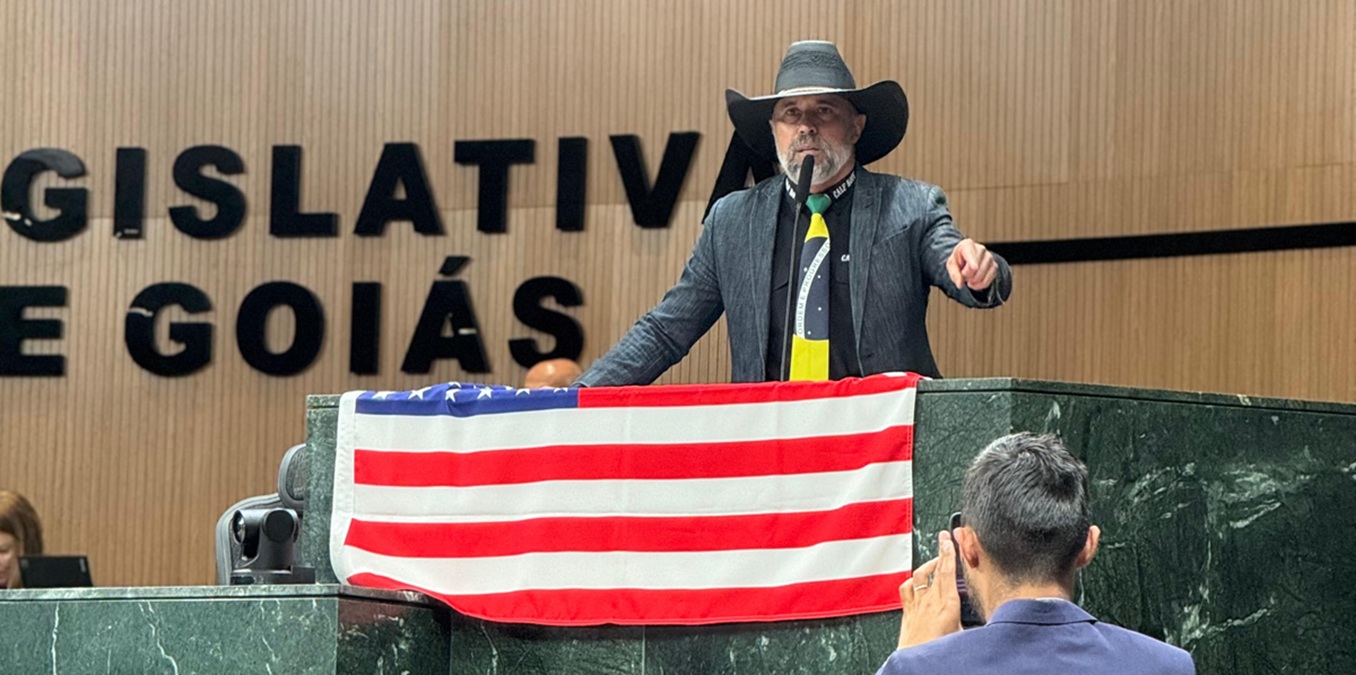 Durante discurso na tribuna da Assembleia Legislativa de Goiás (Alego), o deputado estadual Amauri Ribeiro (União Brasil) criticou duramente o ministro Alexandre de Moraes, do Supremo Tribunal Federal (STF), e defendeu sua prisão. Usando uma gravata com as cores da bandeira do Brasil e carregando a bandeira dos Estados Unidos, o parlamentar afirmou que o Brasil vive um “sistema podre” e acusou o STF de suprimir liberdades fundamentais.
