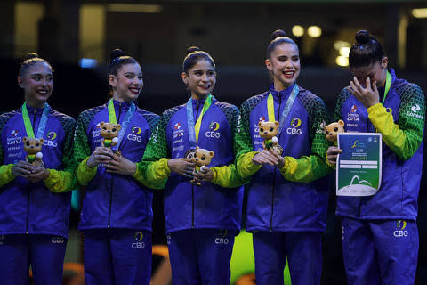SÃO PAULO, SP (FOLHAPRESS) – O Brasil conquistou neste sábado (23) a medalha de prata no conjunto geral no Campeonato Mundial de Ginástica Rítmica, disputado pela primeira vez na América do Sul, no Rio de Janeiro. O pódio do país na competição, a mais importante da modalidade depois dos Jogos Olímpicos, era inédito.