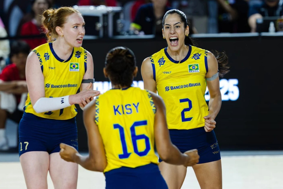 Depois da batalha emocional dos dois primeiros sets, o Brasil entrou embalado no terceiro, abriu vantagem logo cedo e manteve o ritmo até fechar o jogo com tranquilidade.