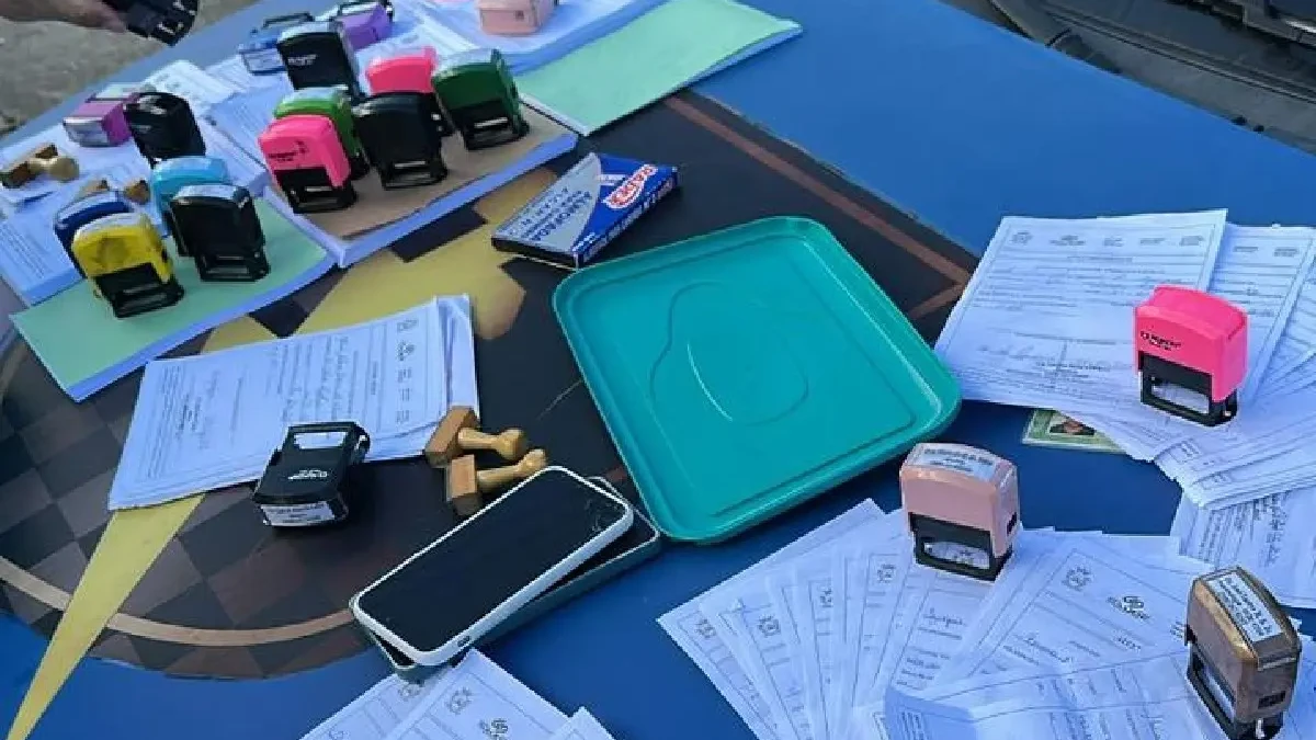 Durante a abordagem, os policiais apreenderam 25 carimbos, 11 blocos de receituários em branco e diversos atestados já preenchidos com dados diferentes. Conforme as investigações, os documentos utilizavam registros verdadeiros de médicos em atividade, o que aumentava a aparência de autenticidade e dificultava a identificação da fraude.