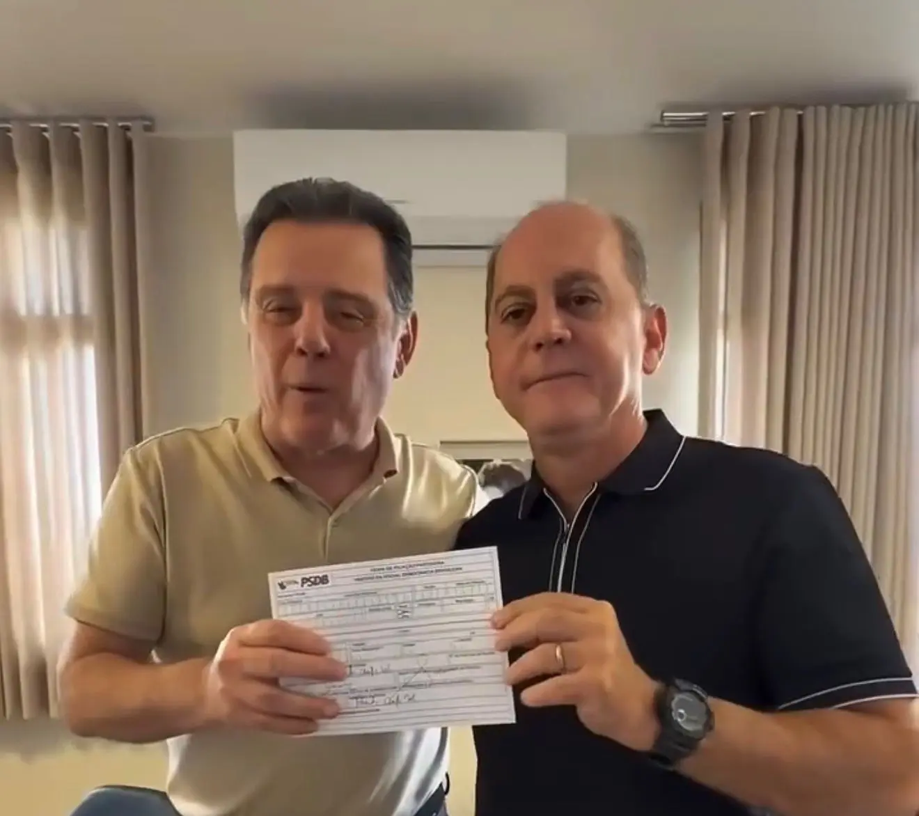 O ato de filiação chegou a ser registrado em vídeo ao lado de Marconi, reforçando o alinhamento entre os dois e indicando apoio ao projeto político do tucano para 2026.