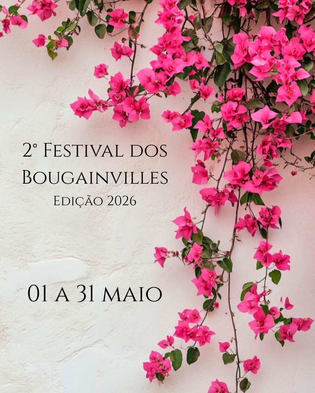 O mês de maio será marcado por experiências únicas com a realização do 2º Festival dos Bougainvilles – Edição 2026, que acontece entre os dias 1º e 31, reunindo cultura, gastronomia e vivências em um ambiente cuidadosamente preparado para receber o público.
