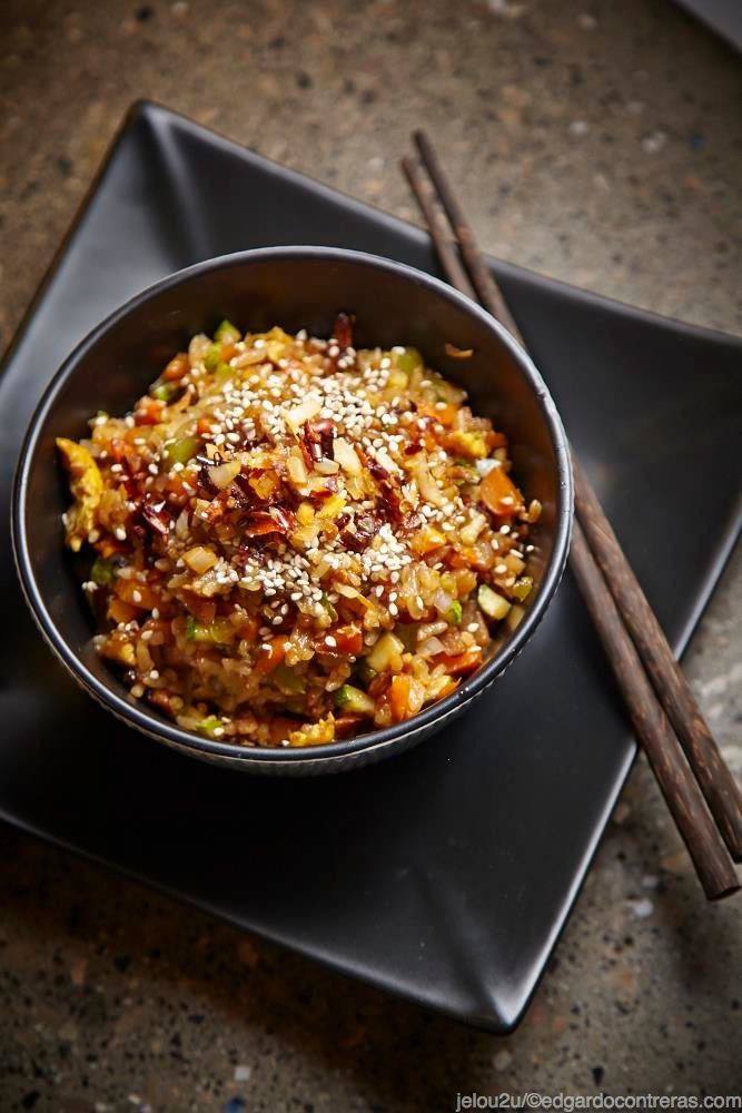 Nesta receita, vamos preparar uma versão vegetariana do Yakimeshi, utilizando legumes coloridos e tofu.