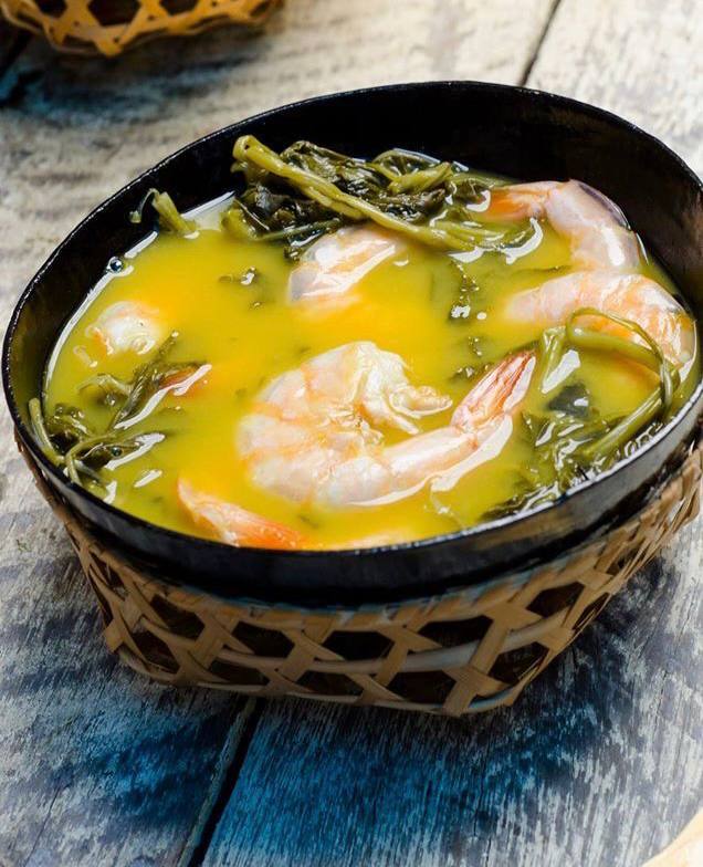 - Sirva o caldo quente em cuias, com o jambu refogado por cima.