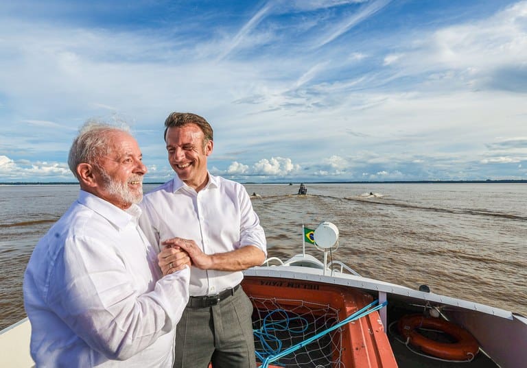 Macron chegou ao país para uma visita de três dias, depois de passar pela Guiana Francesa. Ele ficará algumas horas na capital paraense, onde conheceu, com Lula, a ilha do Combu, uma das maiores da cidade.